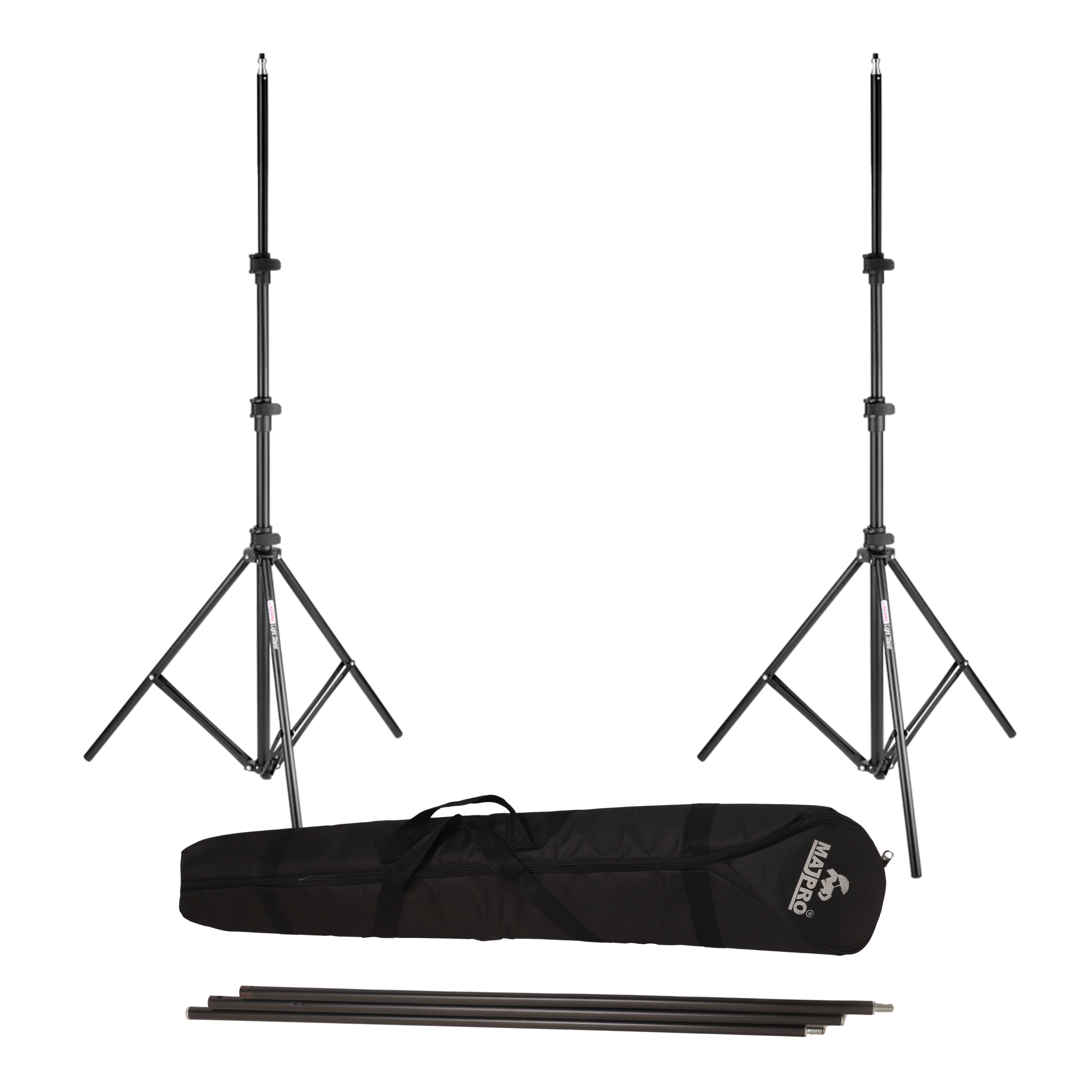 MAJPRO 9ft Photography Light Stand Kit with 2 Adjustable Tripods & Carry Bag | Heavy-Duty Aluminum Stands for Softbox, LED, Ring Light & Studio Equipment